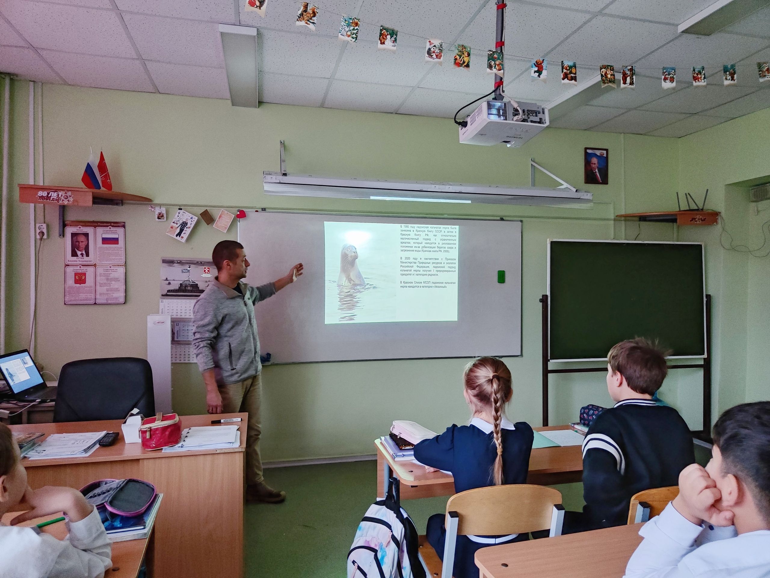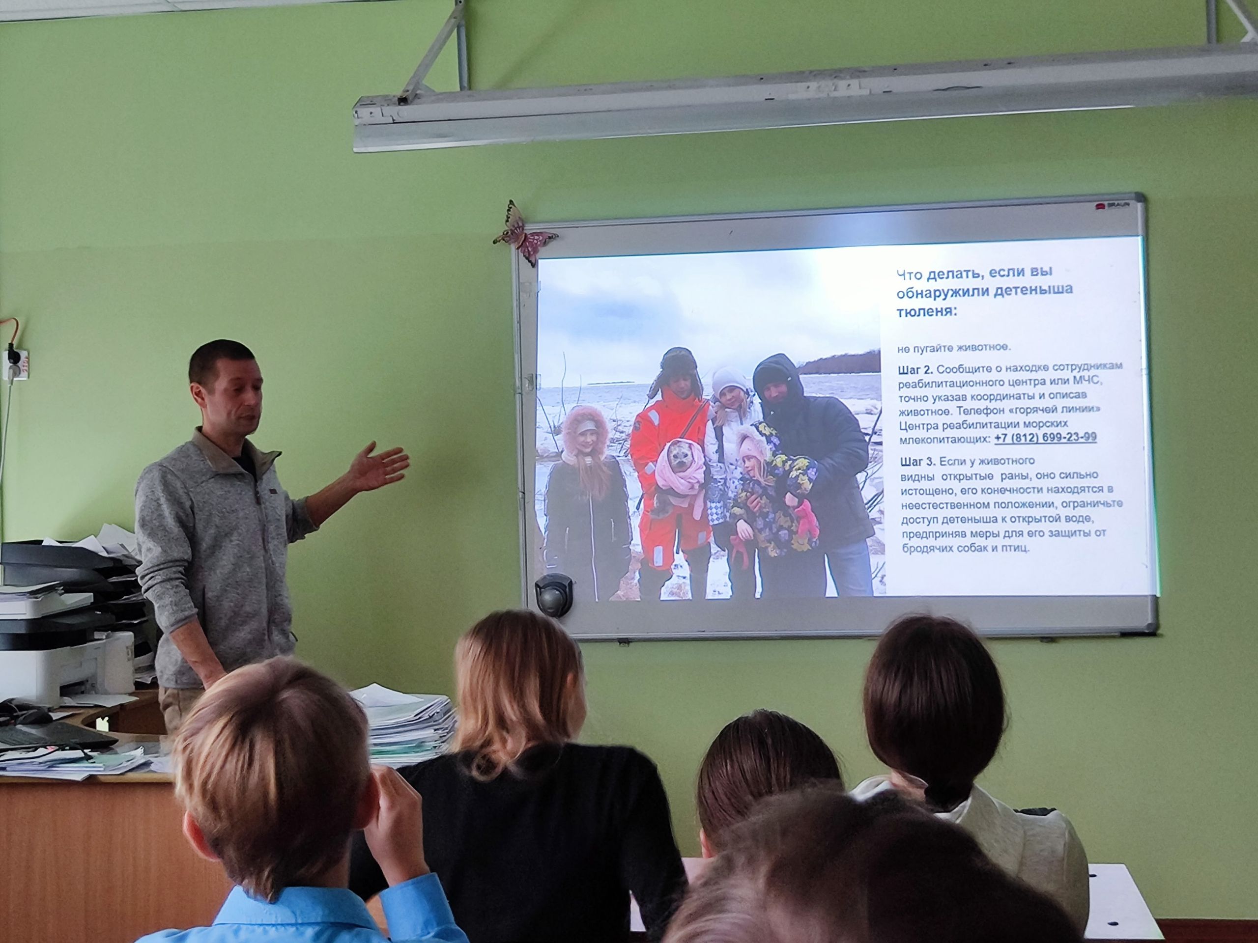 Он провел увлекательные лекции для учащихся 5-6 классов, посвященные жизни тюленей. Ребята узнали о происхождении этих морских млекопитающих, их естественной среде обитания, особенностях питания, а также о серьезных угрозах, с которыми они сталкиваются в современном мире.