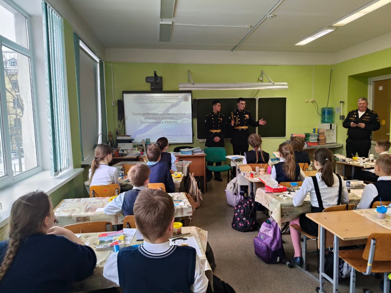 4 февраля нашу школу посетили обучающиеся Кронштадтского морского кадетского военного корпуса. Кадеты провели встречу с учениками 4–8 классов: рассказали о своём учебном заведении, о возможностях поступления в профильные вузы без вступительных экзаменов и о льготах для военнослужащих и их детей. Ученики с интересом слушали и задали много вопросов — разговор получился живым и полезным.