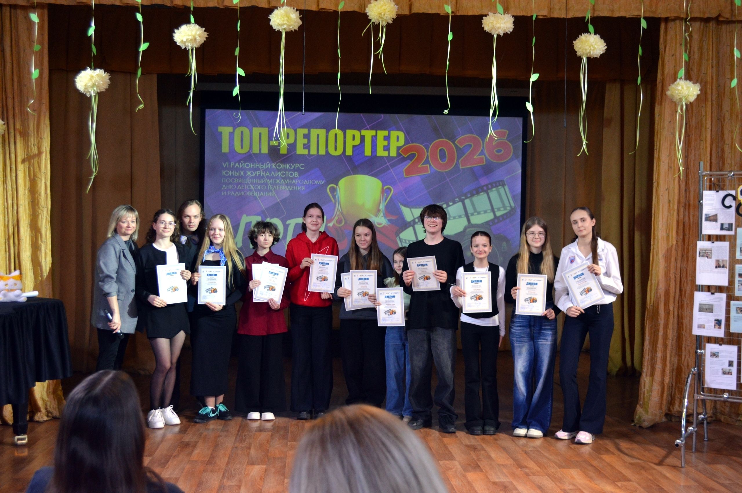 6 марта в Доме детского творчества «Град чудес» к Международному дню детского телевидения и радиовещания состоялась торжественная церемония награждения юных журналистов и подведение итогов районного конкурса «Топ-репортер 2026».